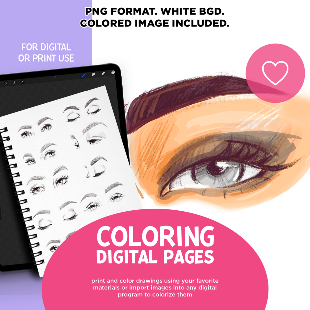 Eyes Coloring Book, Adult Coloring Book, Adult Coloring Pages, Coloring Therapy, Coloring Cards, Hand Painted, Face Coloring, Procreate Png