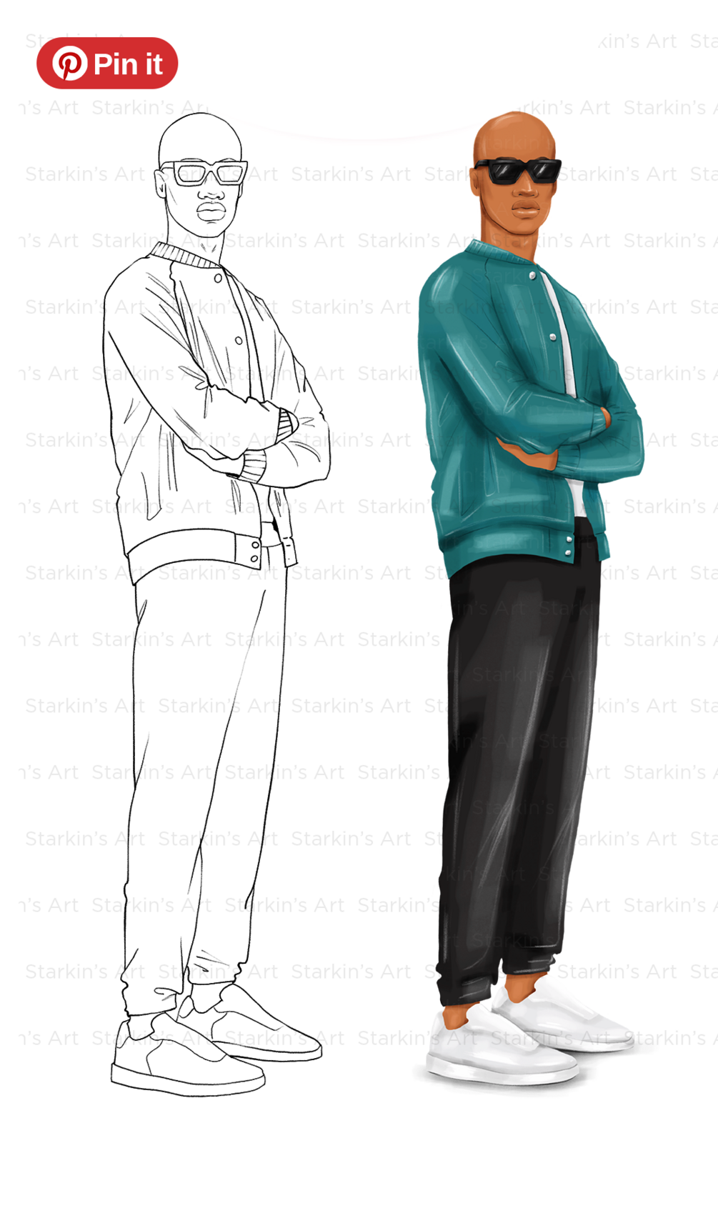 Tags: Starkinsart, Kristi Starkin, Kristina Starkina, Fashion Figure Template, Croquis Template, Fashion Croquis, Men Figures Templates, Fashion Design Template, Male Fashion Stamp, Black Man, 48